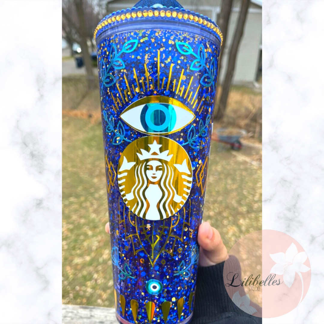 ✨blue/gold Bling lid